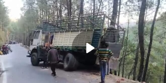 घटना बुधवार सुबह करीब सात बजे की है। ट्रक चालक अंकित सिंह ने बताया कि सामने से आ रही कार को पास देने के लिए उसने अचानक ब्रेक लगाया। ढलान में होने के चलते लोडेड ट्रक का पिछला टायर सड़क से बाहर चले गया। जिससे ट्रक का पिछला हिस्सा खाई की ओर लटक गया। गनीमत रही कि सड़क किनारे चीड़ के पेड़ से टकराने के बाद ट्रक सड़क पर ही रूक गया। और खाई में गिरने से बाल बाल बच गया। और एक बड़ा सड़क हादसा होने से टल गया।