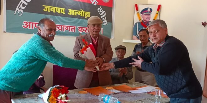 अल्मोड़ा। उत्तराखंड पूर्व सैनिक लीग की जिला इकाई द्वारा बुधवार को कचहरी स्थित प्रधान कार्यालय में मासिक बैठक आयोजित की गई। इस दौरान पूर्व सैनिकों ने नौ सेना दिवस धूमधाम से मनाया। और 90 वर्षीय सेवानिवृत्त नौ सैनिक सीपीओ नरेंद्र जोशी और 1971 युद्ध में सक्रिय भागीदारी निभाने वाले सेवानिवृत्त कंमाडर हीरा सिंह सांगा को सम्मानित किया गया।
