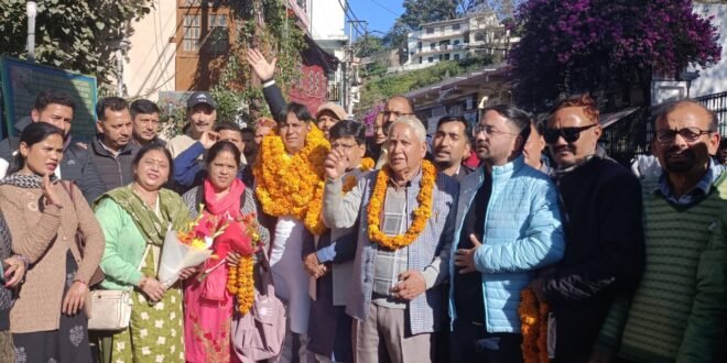 अल्मोड़ा। कांग्रेस हाईकमान ने भूपेंद्र सिंह भोज को दोबारा जिलाध्यक्ष नियुक्त किया है। नगर कांग्रेस कमेटी द्वारा नवनियुक्त जिलाध्यक्ष भूपेंद्र सिंह भोज का चौघानपाटा में फूल मालाओं से भव्य स्वागत किया। कार्यकर्ताओं ने भोज के दोबारा मनोनयन पर पार्टी नेतृत्व का आभार व्यक्त किया और आतिशबाजी व मिष्ठान वितरण कर जश्न मनाया।
