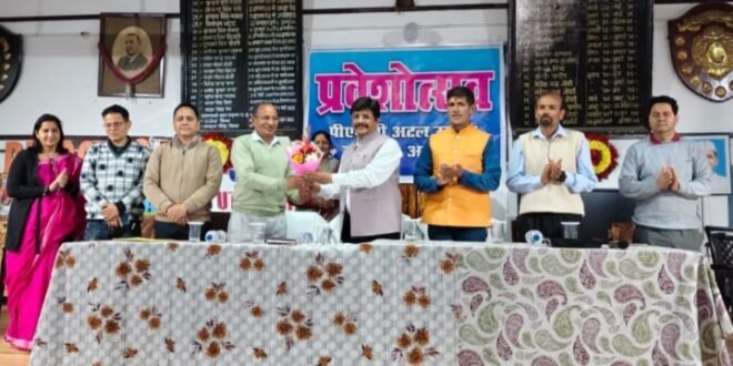 अल्मोड़ा: पीएम श्री अटल उत्कृष्ट राजकीय इंटर कॉलेज अल्मोड़ा में ‘प्रवेशोत्सव’ कार्यक्रम का भव्य आयोजन किया गया। इस अवसर पर विद्यालय में नए प्रवेश लेने वाले छात्र-छात्राओं का स्वागत किया गया। और उन्हें निशुल्क पुस्तक का वितरण किया गया।