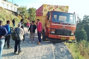 अल्मोड़ा। नगर के लक्ष्मेश्वर स्थित गैस गोदाम लिंक मोटर मार्ग पर एक बड़ा हादसा होने से टल गया। शुक्रवार शाम सिलेंडर से भरे एक ट्रक का आगे का टायर सड़क से बाहर निकल गया। जिससे ट्रक आधा सड़क से बाहर लटक गया। चालक व परिचालक ने कूदकर अपनी जान बचाई। …